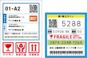 コスト重視の普通紙を使った情報ラベル、和紙を使った商品ラベルにも十分な黒濃度・高画質なカラーで印刷いただけます。