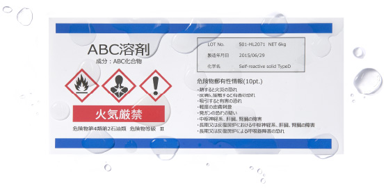 耐水性、耐アルコール性、色の安定性に優れた顔料インクを使用。水や薬品を扱う業務、長期保管する業務で安心です。