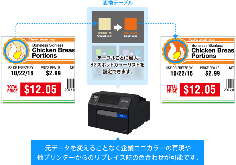 プリンター内で特定の色を指定の色に変換するスポットカラーマッチング機能を搭載。