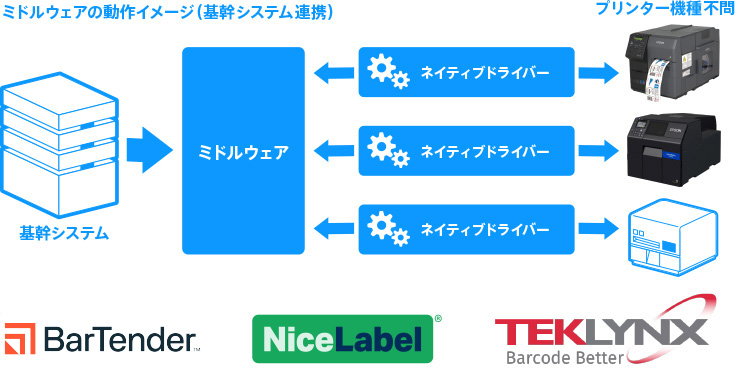 主要なミドルウェア用のネイティブドライバーに対応しています。ネイティブドライバーによって基幹システムとの親和性を高め、ミドルウェアの機能、ネットワークの機能を十分に活用したシステム連携を可能としています。