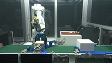 ロボットとピーラー機能付きラベルプリンターによるラベルシールの貼付の自動化を実現します。