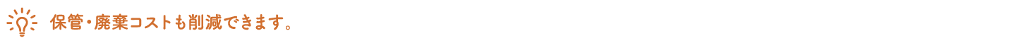 必要なラベルを必要な時に、必要な量だけ印刷できるので、場所と手間を取る印刷済ラベルの管理や、内容変更のために使えなくなったラベルを破棄することがなく、ムダがなくなります。