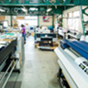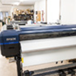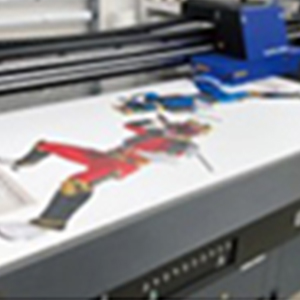 ターポリンや布地へのカラー印刷を内製化でき、小ロット印刷も安価に