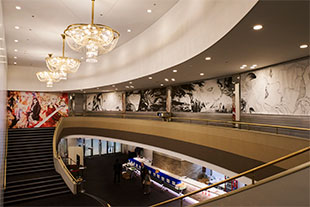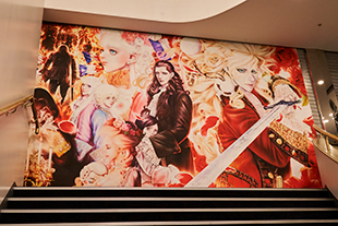 11月29日から12月10日には、東京・有楽町の「ヒューリックホール東京」にて脚本/横内謙介、演出/宮本亞門によるミュージカル『イノサンMusicale』も上演された。ここでは、会場のホワイエに設置されたシャッターを活用し、64インチ インクジェットプリンター SC-P20050Xを用いて制作した大型の作品プリントを掲示。約1.5m×4.5mほどの出力物の裏にマグネットを取り付けることで、簡単な取り付け取り外しを実現。上下に組み合わせ、高さ約3mほどにもなるシャッターサインにより、観劇に来た人たちの注目を集めていた。この大型サインには、坂本眞一さんも、その迫力に大いに驚くと共に大判プリンターの表現力や可能性に衝撃を受けたという。
