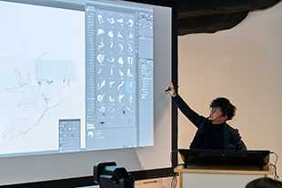 展示の会期中、坂本さんによるトークショーも実施。ライブドローイングによる作画テクニックなども解説された。