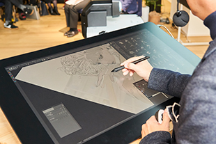 漫画は通常、雑誌の見開きのサイズが最大なので、大きなプリントで見るのは私にとっても衝撃的でした。今後、益々増えていくデジタルのマンガ作品において、エプソンの印刷技術と漫画家の技術をコラボレーションすることで、今回のような作品展や、従来とは異なる作品づくりが可能になるのではないかと期待しています。また、デジタル環境だけで作画していると見えてこない、色の繊細さやグラデーション、透明感などが美しいと感じました。細かい書き込みの再現性も抜群です。こうした印刷の技術がもっと身近になれば、作家の意識が高まるのはもちろん、一般家庭でアートとして漫画作品を飾るなどして楽しんでいただける、1つの可能性になりうると感じる展示でした。