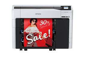 「SC-T3750D」は2023年1月に発売された商業・産業向け大判インクジェットプリンターSureColorシリーズの最新モデルだ。POPやポスターで求められる鮮やかな赤色を再現するために、レッドインクを含む6色の「UltraChrome XD3インク」を搭載。同インクは、ポスター用途にも使用しやすい。またレッドインクを採用することで、売場で目を引く「鮮やかな赤」から「深みのある赤」まで表現できる。