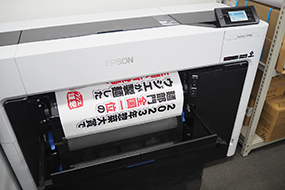 長年使用していた「SC-T3250」は稼働年数が長いこともあり、不具合が出てきていた。そこで同社では、販促物に求められる赤の色を再現しやすいレッドインクを採用した6色大判インクジェットプリンター「SC-T3750D」の導入に踏み切った。