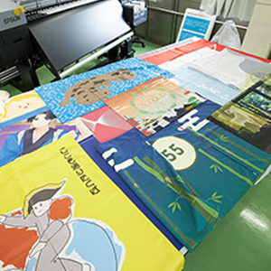 ターポリンや布地へのカラー印刷を内製化でき、小ロット印刷も安価に