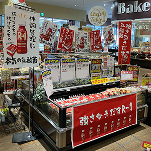 刺身や精肉の「赤」が際立つ販促物で売場での視認性がアップ
