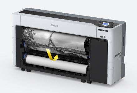 上段のロール紙給紙装置を巻取り装置に変更が可能なため、オプション無しで自動巻取りが可能。出力物の後処理が簡単になり時間も節約、オペレーター無しで継続的に印刷することが可能です。