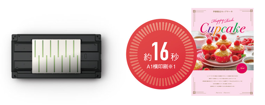 2.64インチ大型ヘッド搭載により高速印刷を実現。ポスターA1横印刷16秒(注1)で大量印刷時の時間短縮を可能にしました。