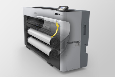 上段のロール紙給紙装置を巻取り装置に変更が可能なため、オプション無しで自動巻取りが可能。出力物の後処理が簡単になり時間も節約、オペレーター無しで継続的に印刷することが可能です。