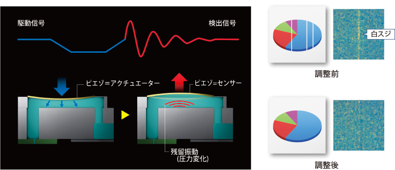 ノズル自己判断システムを搭載。プリントヘッドのドット抜けを印刷ジョブごとに自動検知し、画質を調整します。高画質プリントを維持するだけでなく、プリントミスにより大量印刷時のムダを抑えます。