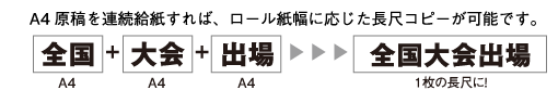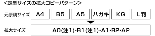 A4、B5、A5、ハガキ、KG、L判の原稿サイズからA0(注1)やA1などの定形大判サイズに加えユーザー定義サイズへの拡大コピーが可能です。