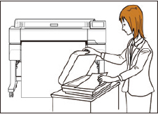 | (注1) | 出力用紙がB1サイズ以上の場合は、ADF機構からは原稿1部のみの対応となります。原稿複数部セットはできません。また、原稿がL版またはハガキサイズのとき、ハガキや写真などの厚手の用紙のときはADF機構は使用できません。 |