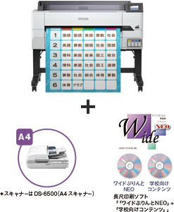 | A0 Plus 4色 シングルプリンター A4 スキャナー DS-6500 長尺印刷ソフト「「ワイドぷりんとNEO」+「学校向けコンテンツ」」 (注)「ワイドぷりんとNEO」の開発元は、株式会社グレープシステムです。 |