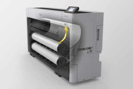 上段のロール紙給紙装置を巻取り装置に変更が可能なため、オプション無しで自動巻取りが可能。出力物の後処理が簡単になり時間も節約、オペレーター無しで継続的に印刷することが可能です。