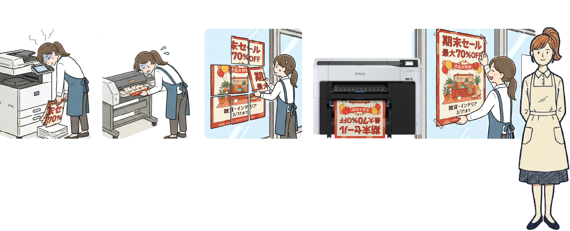 印刷からポスター掲示までの作業が大幅に短縮!そのぶん接客に集中できるようになりました!