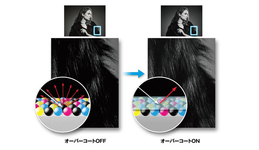 グレーインクにより9色機と同等の画質を確保。人肌など階調性を求める高品位な画質を再現。