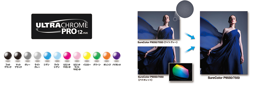 UltraChromePRO12インクはSC-P9550/7550、SC-P20550Lに搭載。