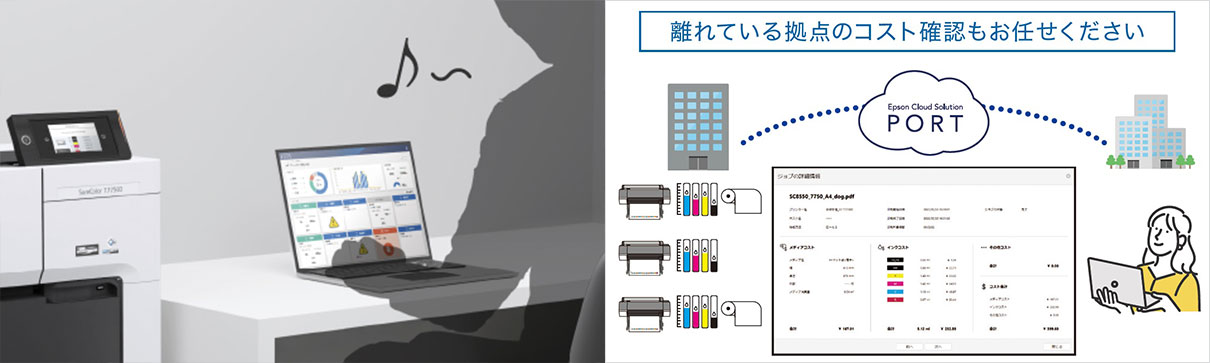 • エプソンのクラウドソリューション PORTで業務の現状把握から、効率的運用、マネージメントまで一元管理。