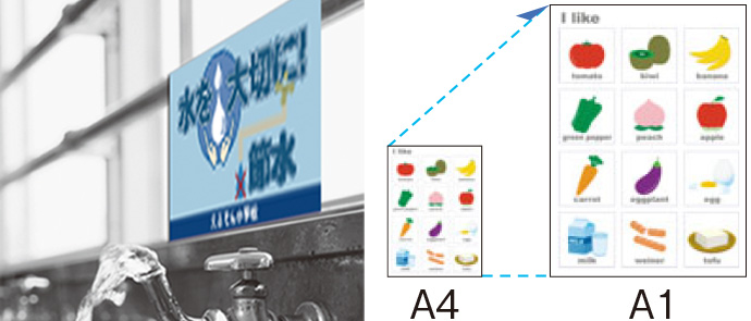 A4→A1の拡大印刷で、1枚あたりモノクロ約54円、カラー約64円の低ランニングコストを実現
