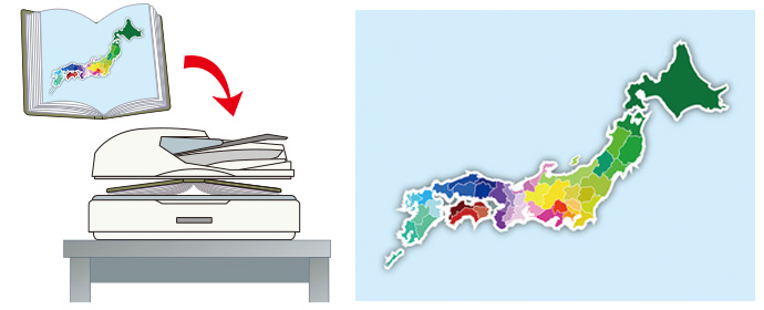 フラットベッドスキャナーだから、厚みのある教材や切り貼りしたポスター作品の拡大コピーにも対応