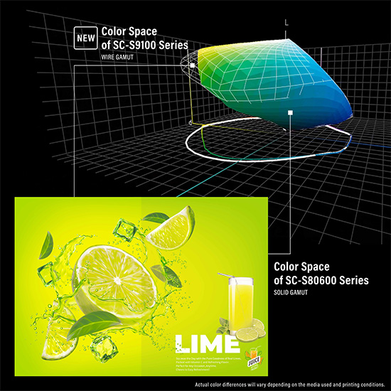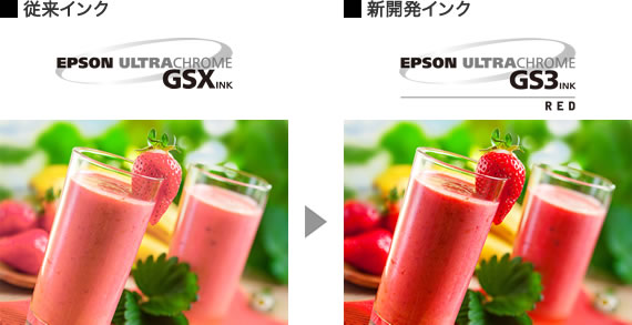 グリーンインクによりグリーン方向の色域が大きく拡大