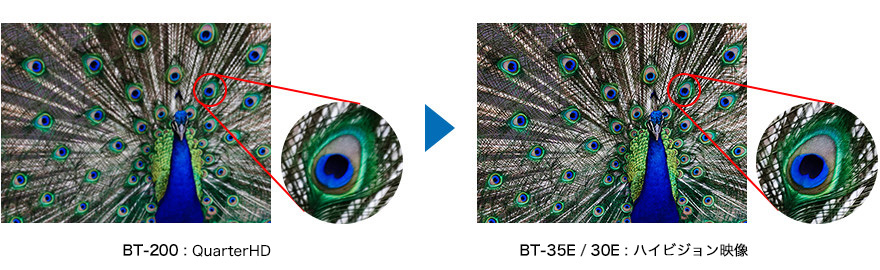 光学エンジンにエプソン独自の0.43型超小型高精細カラーのシリコンOLED(Organic Light Emitting Diode:有機EL)ディスプレイを採用。高コントラストと広い色域を実現し、さまざまな環境光下で見やすい映像を投写します。