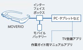 モニターモデルのモベリオを送信機とHDMI®ケーブルで直結。