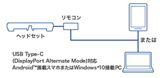 USB Type-C DisplayPort Alternate Modeに対応したAndroid™ 搭載スマホやPCとつなげるだけで、スマートフォンやPCの画面が目の前に拡がります。映像視聴やPCモニターとしてお使いいただけます。