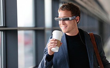 メガネのようにかけるだけで、目の前に大画面が現れて映像を楽しめる