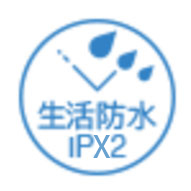 生活防水 IPX2に対応。ちょっとした雨や水しぶきがかかる環境でも安心してご使用いただけます。