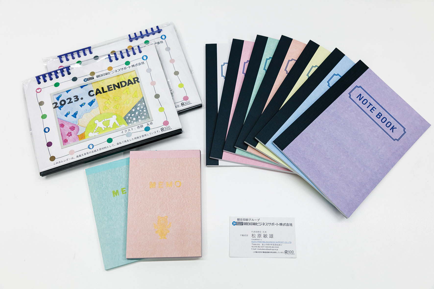 ノート、メモ帳、卓上カレンダーなどのデザインや製作を障がい者が手掛けることで、彼らの優れた能力や器用さなどの才能活用の場にもなり、活躍できる機会を大幅に広げることができています。
