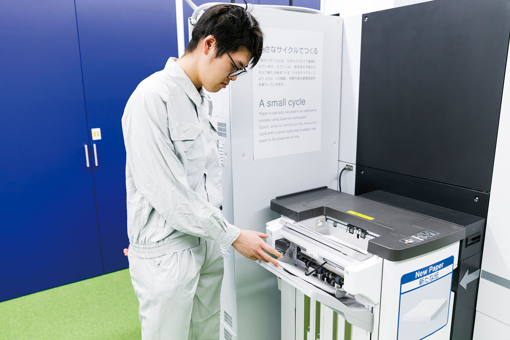 エプソンへ問い合わせと同時に、「PaperLab」を導入した企業への視察なども行い、その結果、「PaperLab」なら書類を外部に持ち出すことなく処理ができ、大がかりな設備も不要でリサイクル紙を生産できる事が分かり、課題解決の可能性を感じました。