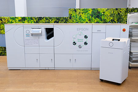 環境保全への貢献だけでなく、地域の小学生への環境教育にも大きく貢献しているPaperLab。設備を設置しているリサイクルプラザでの見学や、エプソンによる古紙リサイクルの出張授業を通じ、子どもたちの再生紙に対する考え方や、環境保全への意識は明らかに変化している。また、本体と紙源プロセッサーが別体となっている本モデルは機密文書を安心して処理できるため、情報漏洩リスクの低減にもつながっている。