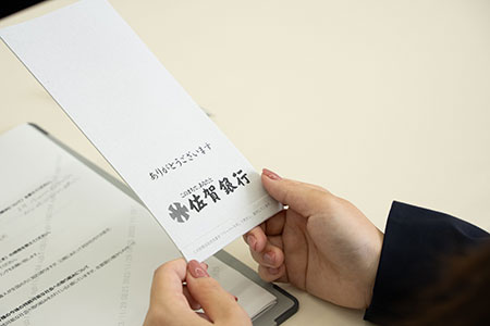 下田:現在は5つの施設に依頼し、各施設から月に1000枚ずつ、合計5000枚を受け取っています。これらは佐賀銀行の全支店に配布されています。