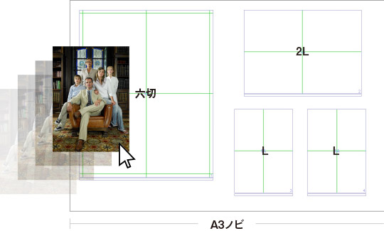 レイアウト用のサンプルテンプレートを表現の目的に合わせて編集したり、新たにオリジナルテンプレートの作成が可能です。通常使用する額やフレームに合わせたテンプレートをあらかじめ作成しておけば、多彩なサイズの写真を効率的に短時間にレイアウトできます。