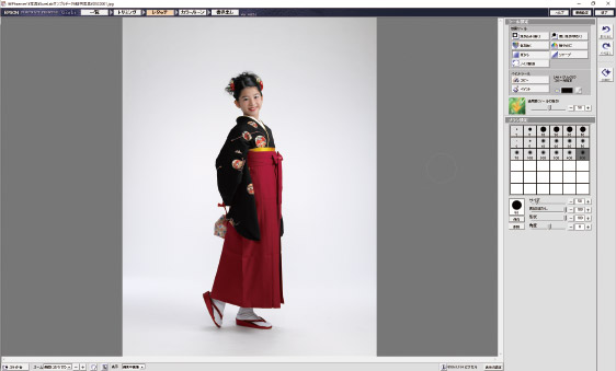 デジタルになじみのない方でも、本格的なトリミングやレタッチが手軽に行えます。サムネイル表示、ブラシを使った修正(焼き込み/覆い焼き/色を抜く/鮮やかに/ぼかし/シャープ/ノイズ軽減/ペイント)、カラーやトーンの変更、調整値を少しずつ変えたサンプル写真の表示などが可能です。