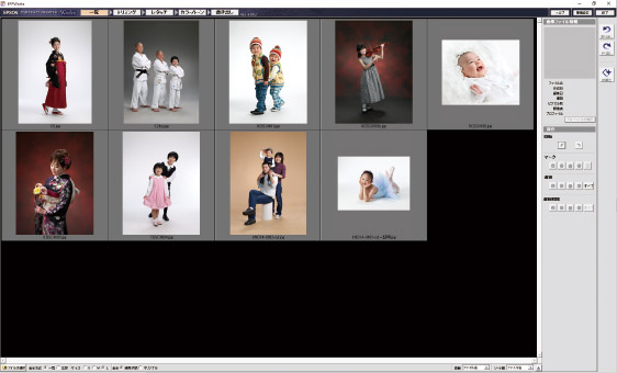顧客管理や取引内容の履歴管理を容易にするため、画像データのページ情報枠へファイル名、顧客名、メモなどの情報をプリント可能。また写真のトリミング、回転、簡易色調整など、ふだん使い慣れた写真ソフトの操作性を再現しつつ、さらに上をゆく機能で作業をより短時間に効率よく処理できます。