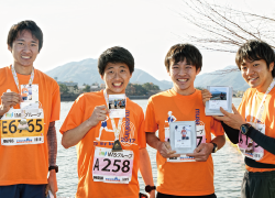 今回の富士マラソンでは、ゴール地点での自動撮影のほか、6名のカメラマンを各ポイントに配置。富士山や河口湖を背景にした写真を選ぶことも可能になった。