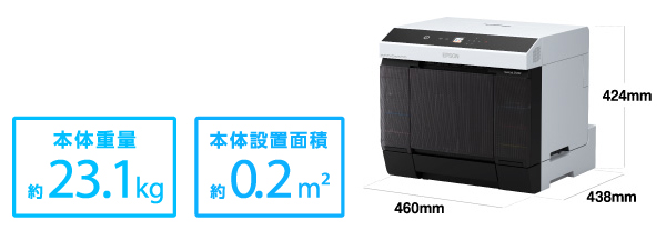 両面ユニット付で幅460mm、奥行438mm、高さ424mmのコンパクトボディ。旧機種同等の床面積0.2m²(注1)があれば、設置が可能。置き場所を選ばず、サブ機としての運用にも適しています。また本体重量は約23.1kgと軽量。これまでオプションだった排紙トレイを内蔵。機器の移動も簡単にできます。