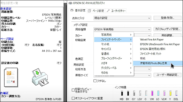 エプソンプリンター用の印刷設定ファイル。用紙ごとに最適な印刷をするための情報が格納されています。
