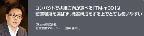 「製品はコンパクトで従来機種の約半分のスペースで設置が可能。2WAYカバー採用で、キッチンなら前方向排紙、レジならと上方向排紙と使う場所に合わせて変更できるので、設置が柔軟で現場に対応し易いです。同一機種もレシートプリンターとキッチンプリンターで兼用できるのは良いですね。機器接続やセッティングも簡単なので、店舗スタッフで行うことも可能です。」