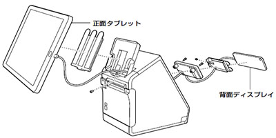 TM-m30Ⅱ-Sには、正面タブレット用アタッチメントと背面ディスプレイ用アタッチメントが同梱されています。