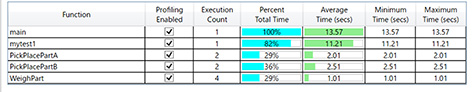 関数ごとの実行時間に関する詳細な統計情報を記録・表示可能。