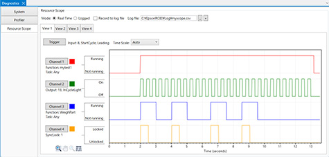 システム構成、プログラムやI/Oの状態などを可視化することができます。装置開発におけるデバッグ作業やトラブルシューティング、最適化すべきポイントの特定など、開発効率を向上するためのツールセットです。