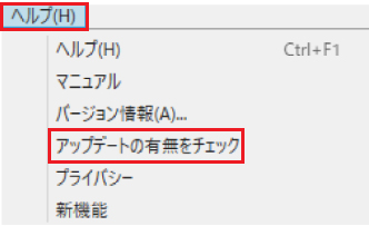 [ヘルプ]→ [アップデートの有無をチェック]より確認頂けます。