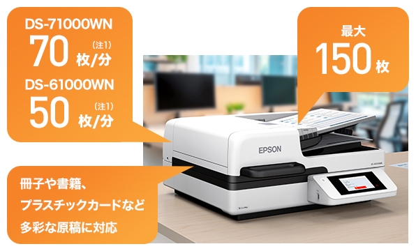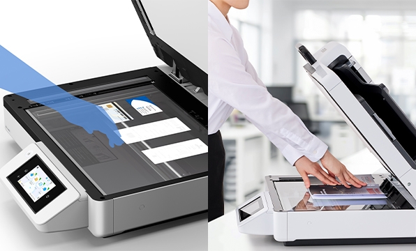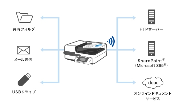 複数のPCでスキャナーを共有利用したり、スマートデバイスからも直接スキャンしたりすることができます。また、ネットワークを介して指定した宛先にダイレクトにデータ送信・保存できるPCレス機能も搭載。スムーズなデータ共有をサポートします。